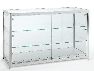 2 Dörrar med las, 8 halogen spotlights, Ram i eloxerad aluminium samt härdat säkerhetsglas.